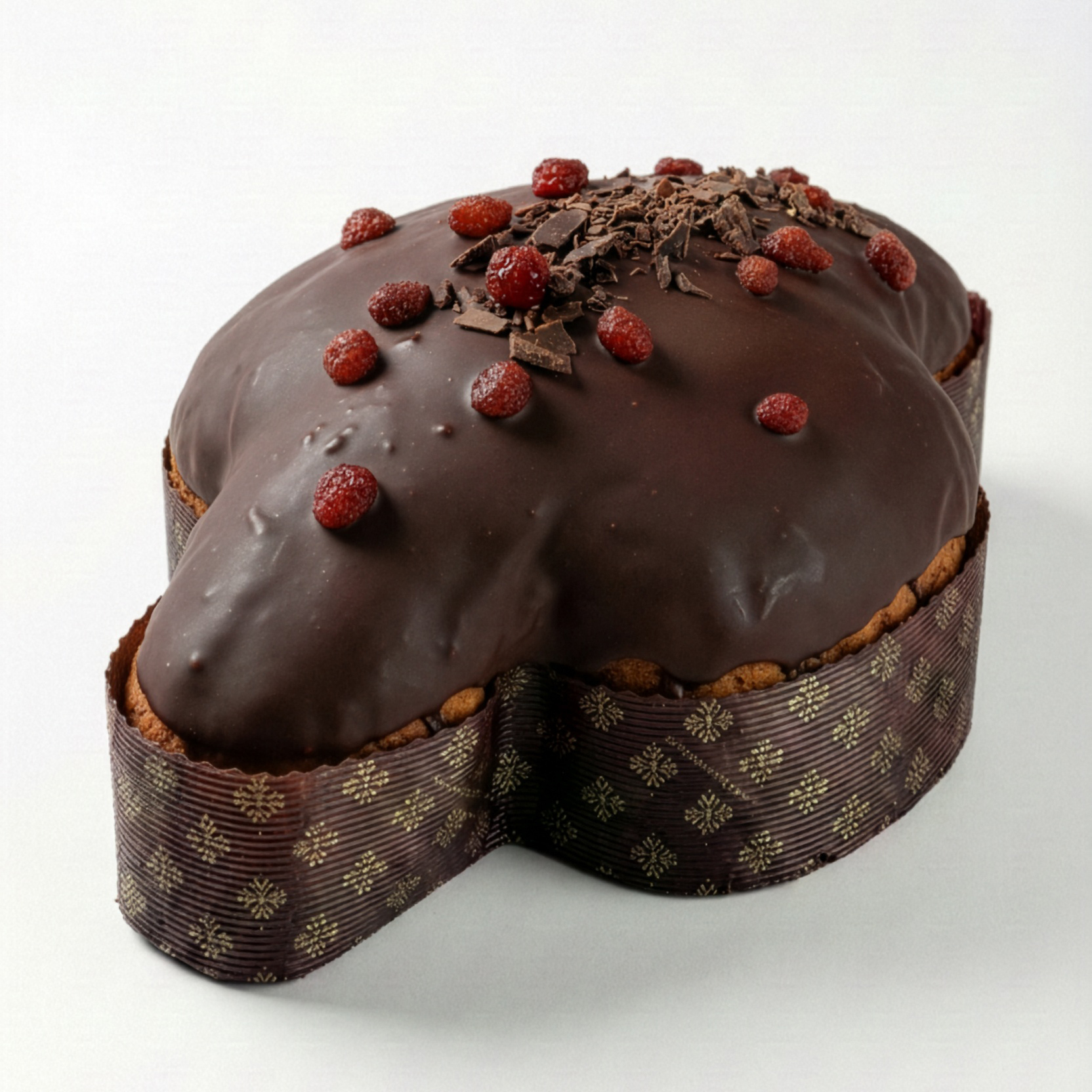 L’anima di questa colomba risiede nel suo impasto scuro e vellutato, arricchito da cacao pregiato che sprigiona profumi profondi e avvolgenti sin dal primo taglio. La struttura, soffice e alveolata grazie alla lenta lievitazione naturale, accoglie l’esplosione di gusto delle fragole candite, che donano una dolcezza fragrante e una nota leggermente acidula.