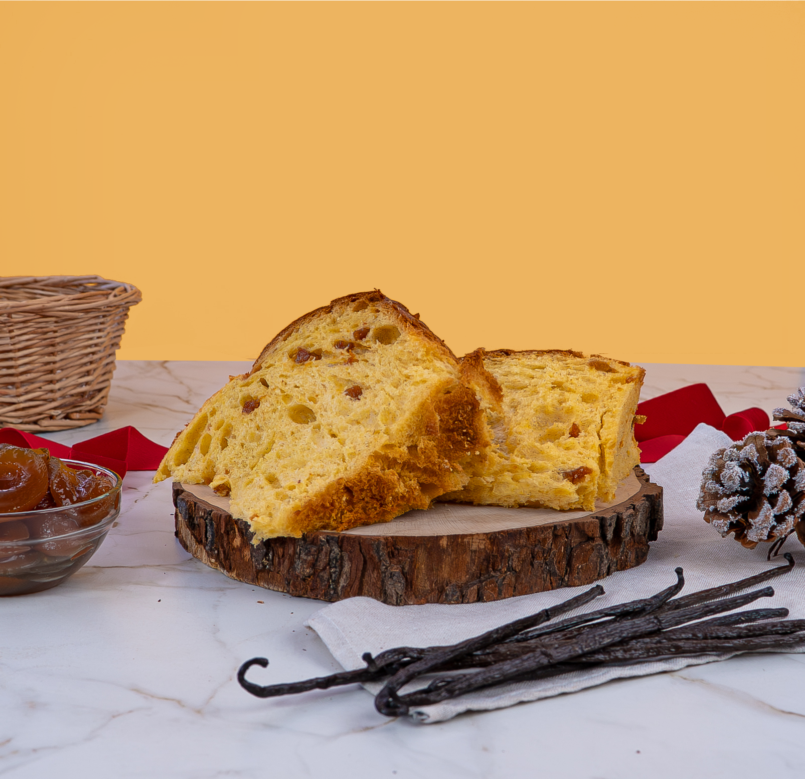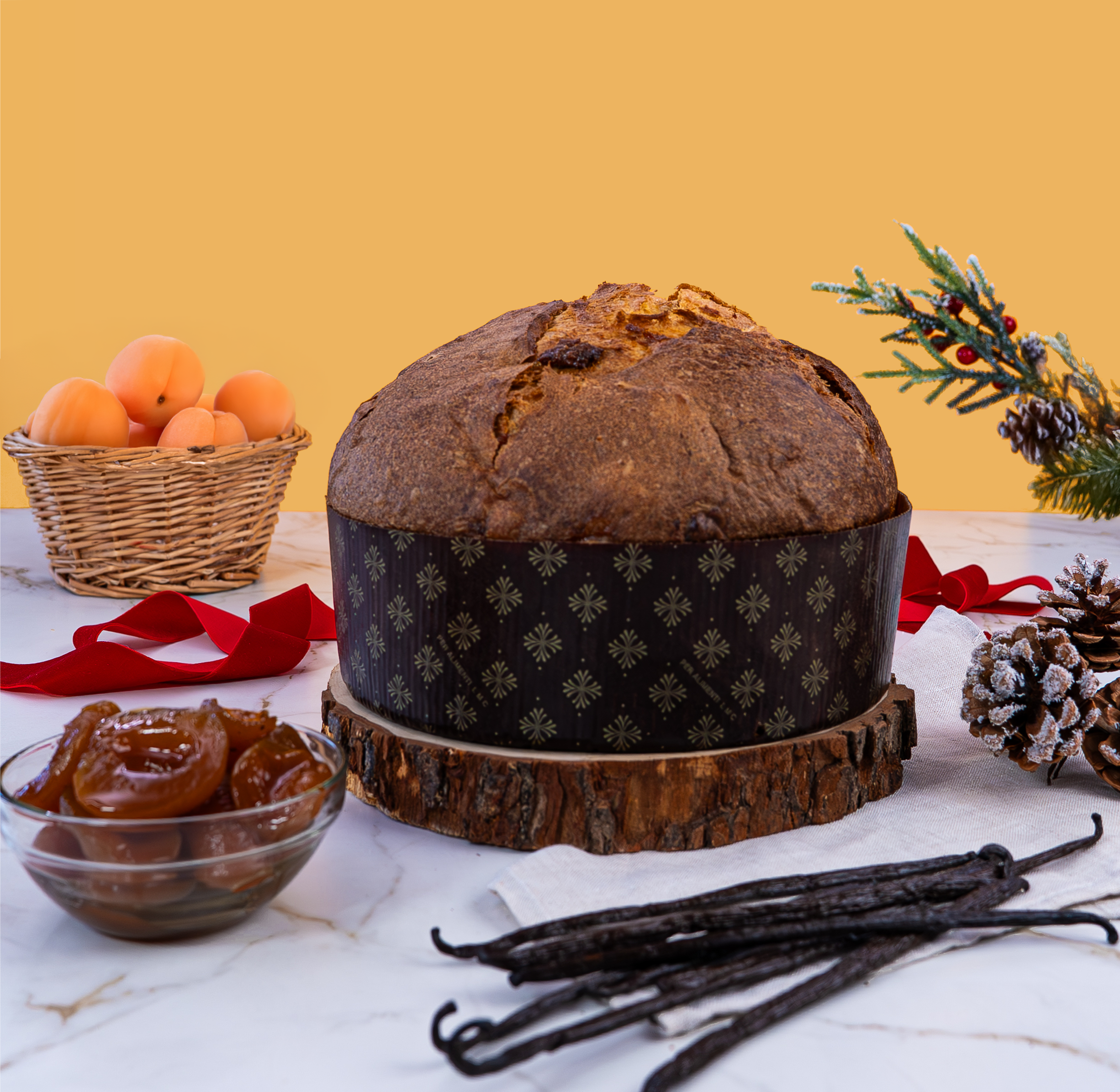 La protagonista di questo lievitato, capace di conquistare i palati più sofisticati, è l’albicocca Cafona del Vesuvio. La sua polpa soda e croccante viene trasformata in canditi succosi e profumati. L’impasto è alto e soffice, frutto di una lievitazione lenta a temperatura controllata.